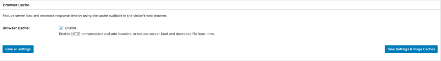 Infine andiamo nella sezione Browser Cache e abilitiamo l'omonima voce e salviamo il tutto cliccando su Save all settings .